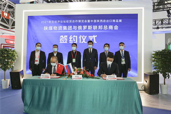 下午3点,陕煤集团成为当天商品展中最繁忙的“热点”参展商,一举完成国内国外两场签约。物资集团现场分别与西宁特殊钢股份有限公司签署了2022年度合作协议,销售其生产的不少于100000吨优特钢产品;与俄罗斯联邦总商会签署中俄经贸领域合作协议,合作领域包括大宗商品采购、物流仓储业务、货代保税业务、供应链增值服务等业务。