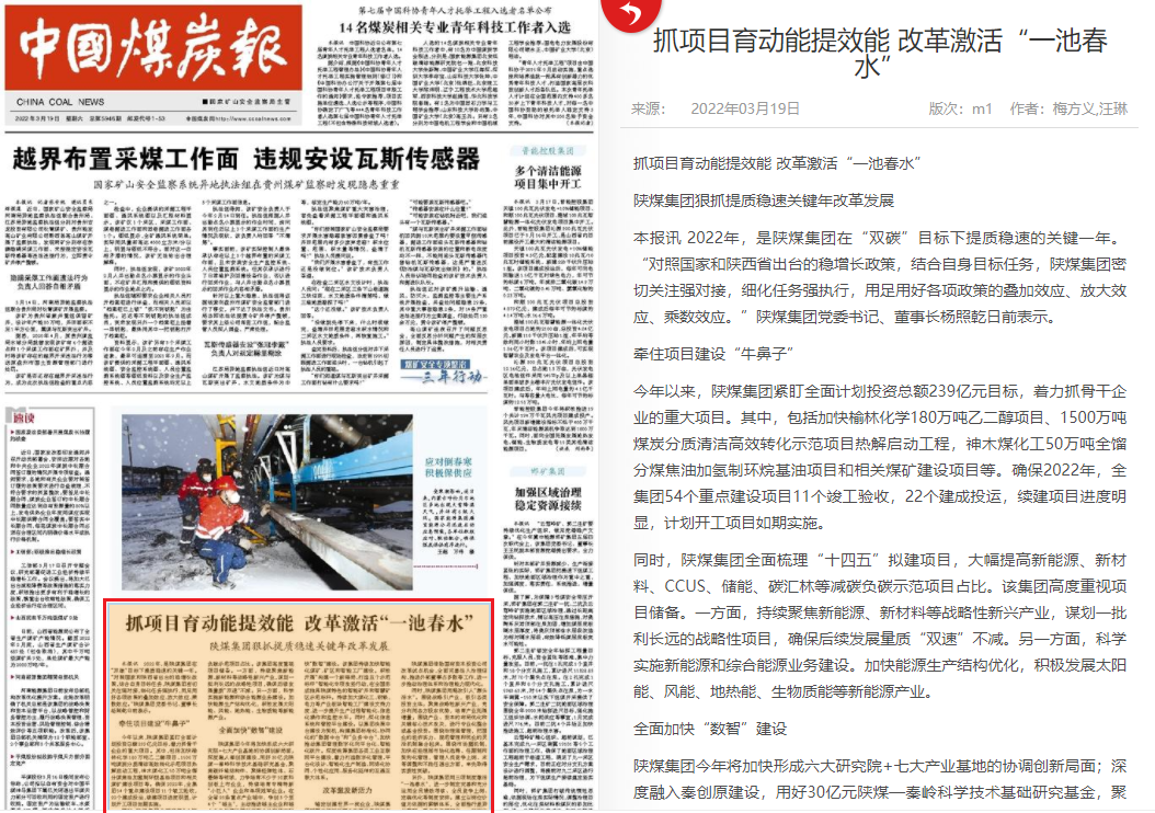 同时,陕煤集团用混改引入“源头活水”。围绕战略引产业,吸引各类投资主体;聚焦战略性新兴产业,充分利用各方股东优势,培育产业拓展增量;围绕产业、资本的布局优化和关键核心技术攻关,进行专业化整合或基金投资。围绕治理强管理,把国企的经济实力、规范管理和民企的灵活机制融合起来。围绕市场塑机制,加快在经理层市场化选聘、任期制和契约化管理,管理人员竞争上岗、末等调整和不胜任退出方面,率先取得实质性突破。
